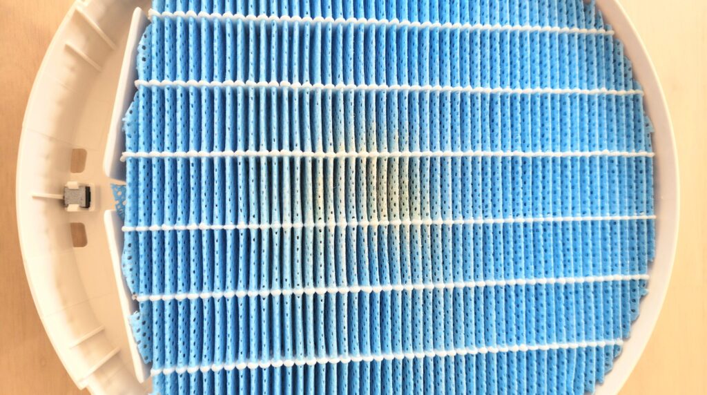 ただ、半年間加湿フィルター部分は掃除していなかったので、内部に吸い込んだホコリがたまっていました。加湿機能を使っていなくても、月1の後ろパネルのお手入れのついでに、たまにホコリを取った方がよいかもしれません。